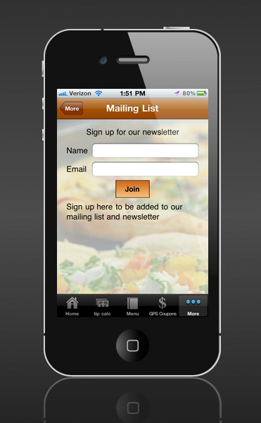 Permite que seus clientes enviem nome e e-mail diretamente de seu aplicativo para receberem boletins informativos (newsletter).